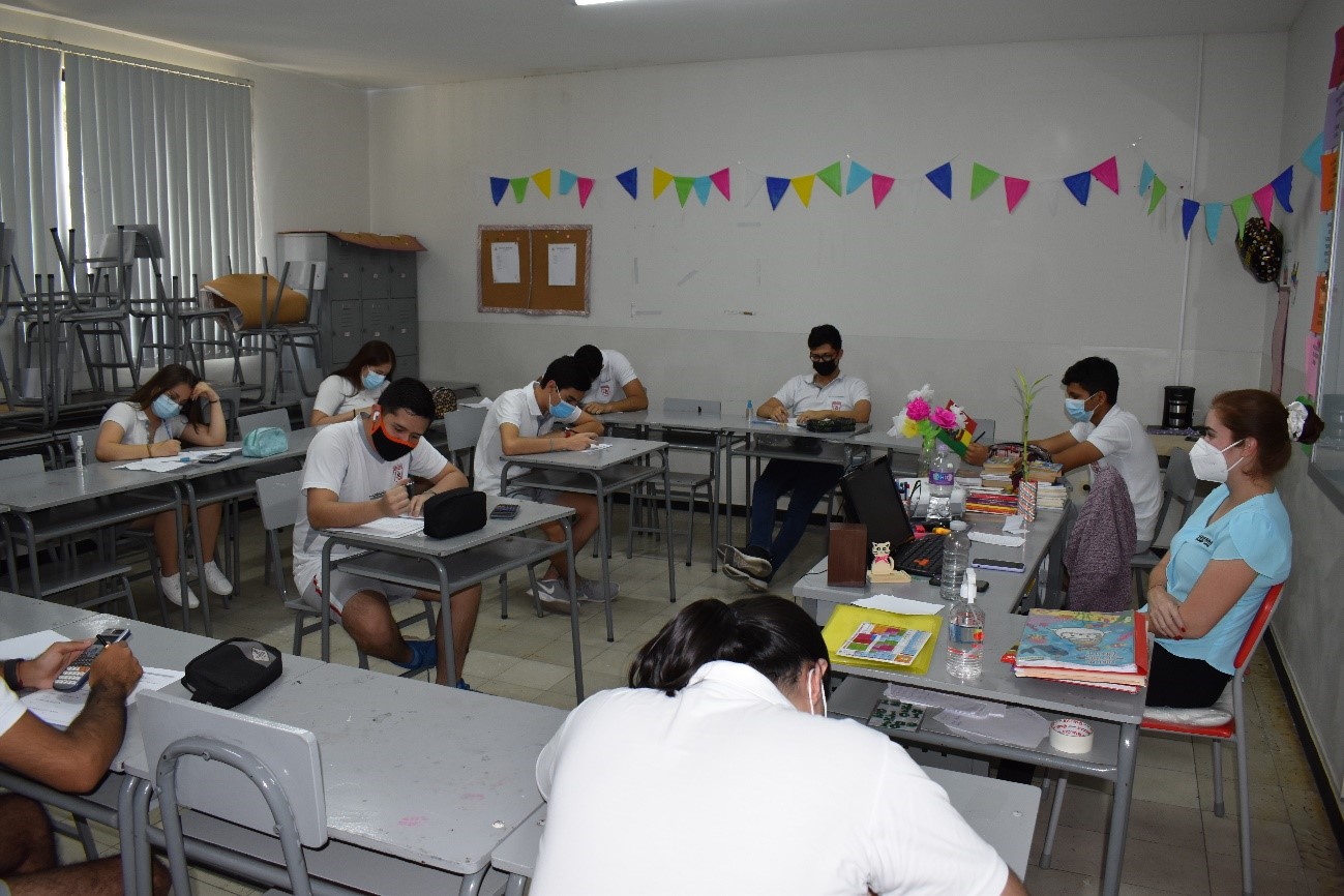 Llegamos al final de la segunda etapa del trimestre y fue un reto de los estudiantes de secundaria alcanzar los objetivos trazados más aún para la promo y pre promo quienes pudieron rendir sus pruebas de forma presencial, con todas las medidas de bioseguridad.